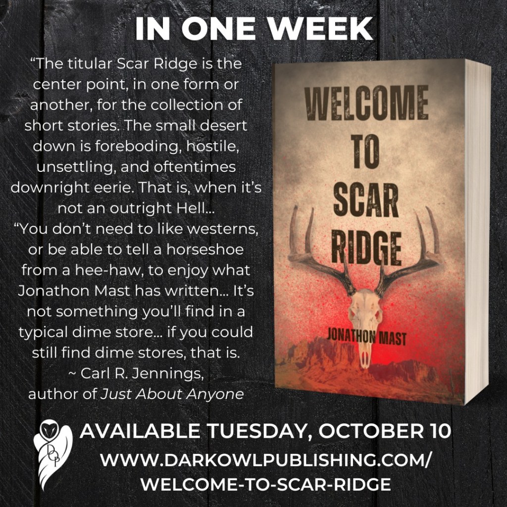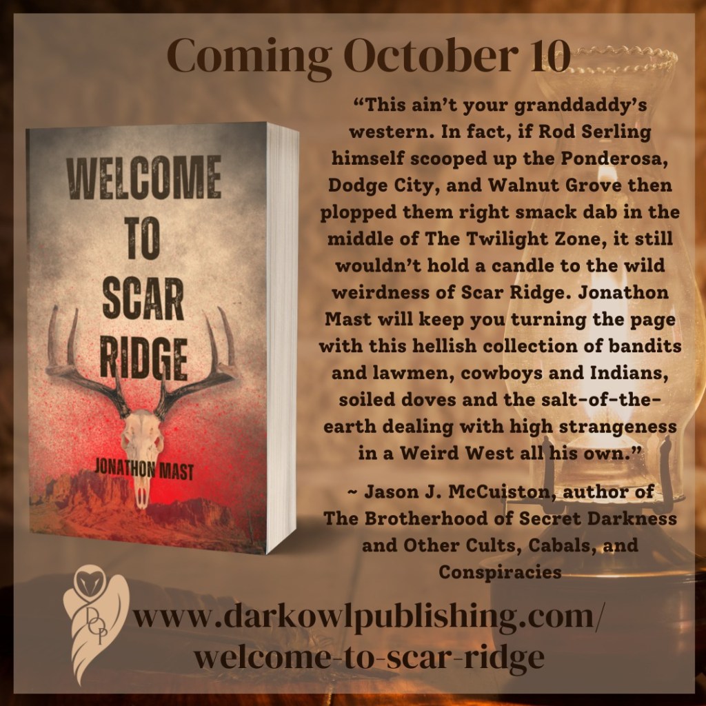 Which is one of the reasons why Dawnsbrook isn’t putting it out. I’m honored to be published again by Dark Owl Publishing, a great company I’ve worked with in the past. Dawnsbrook has a target audience: Middle school kids. Welcome to Scar Ridge doesn’t fit that.